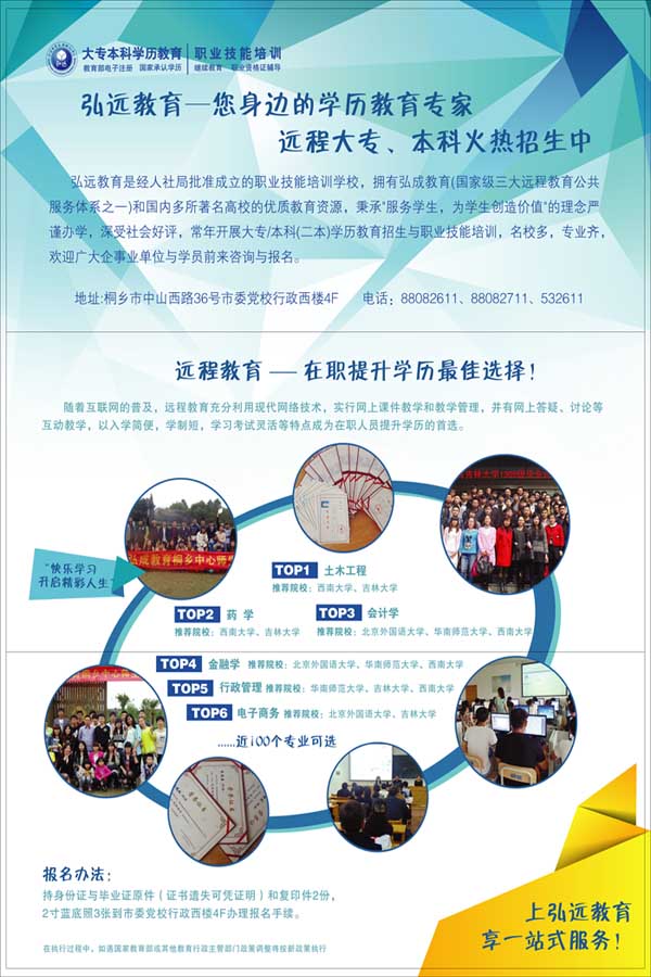 桐乡弘远教育大专/本科/二本2017年春季招生已开始报名,及时把握好机会!(早报名、早毕业、早升职、早加薪)