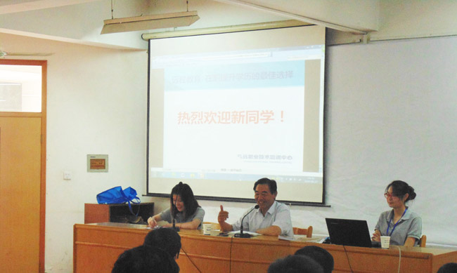 随后,由俞玉平老师为各位新生就教学教务方面作通俗易懂的首次导学辅导。