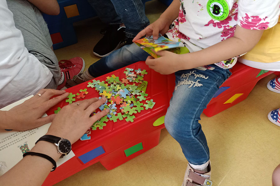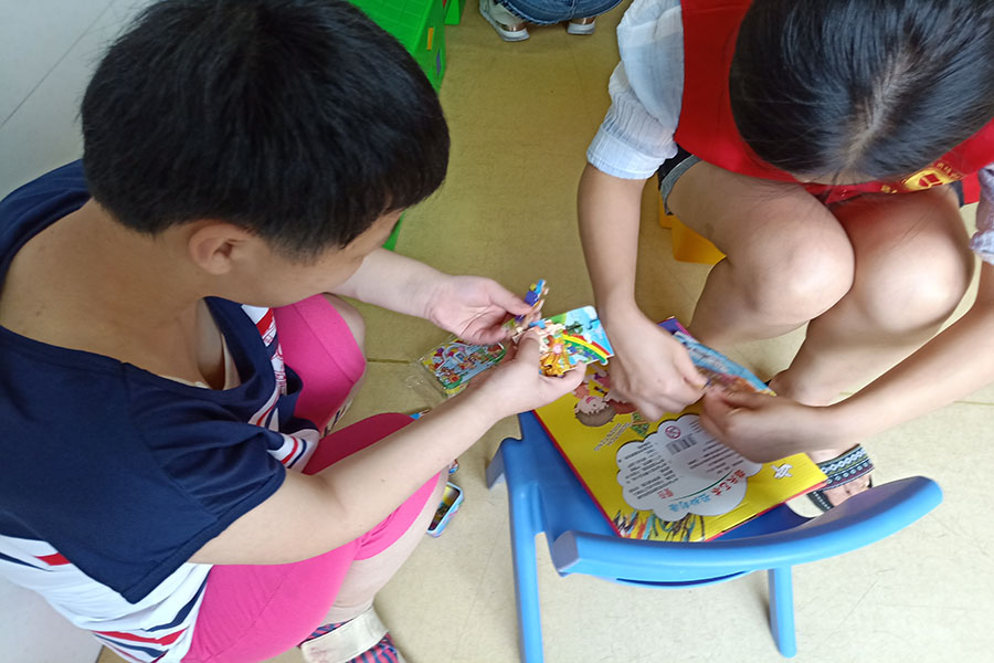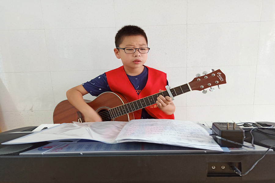 小志愿者为孩子们弹奏了欢乐的歌曲,