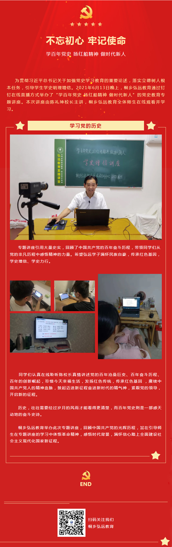 桐乡弘远教育举办“学百年党史 扬红船精神 做时代新人”专题讲座
