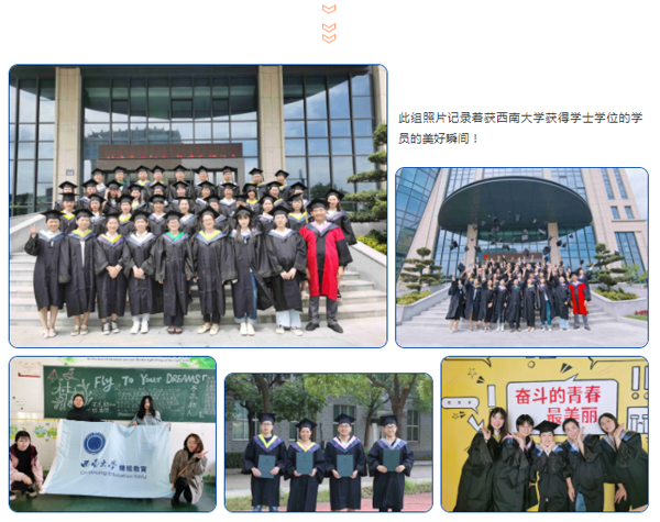 西南大学现代远程教育桐乡市弘远职业技术培训中心学习中心自成立以来,一直秉承“服务学生,为学生创造价值”的理念严谨办学,深受社会好评!毕业了一届又一届学生,其中学士学位授予率一年比一年高!