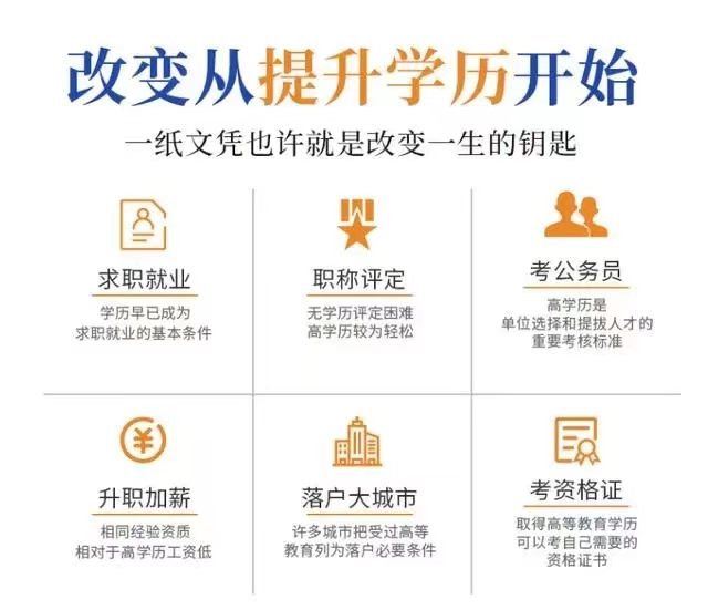 学历这个东西,你可以不用,但是你不能没有,因为一旦遇到需要学历的时候,大部分都是人生关键点,所以有事没事先把学历修了,未雨绸缪才会走得更远,更稳!记住,学历提升是种投资,而不是消费,一次投资终身受益,下定决心,赶紧行动起来吧!